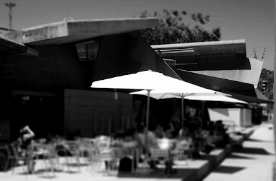 An additional treat of the day was to forge our way up the metro to what we thought was a demolished archery range built for the olympics. Part of the complex isn´t there anymore, but the competition field is still there and has been turned into a soccer (futbol, whatever) field. It was designed by Miralles. The interesting thing to me was to see so many things that came forth in his later work, other than the fact that the thing is just amazing. Enjoy.